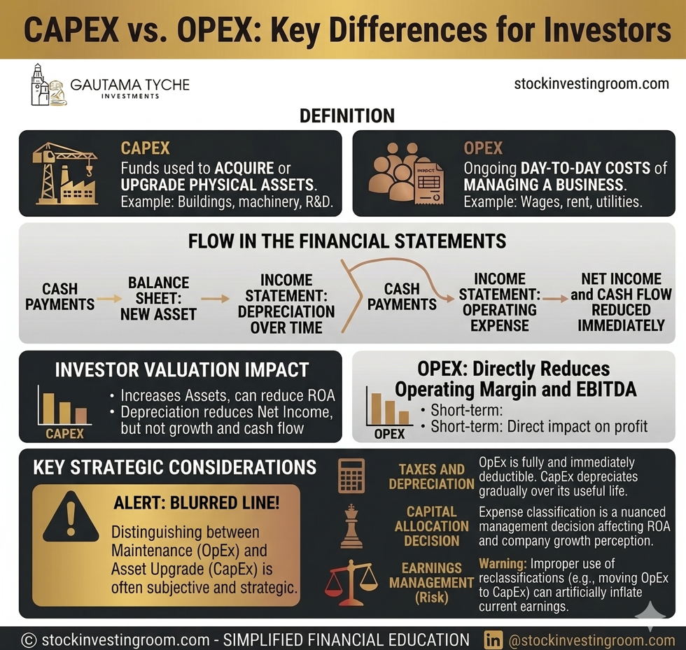 📌CAPEX (Capital Expenditures): Investments in fixed assets (machinery, buildings). For example, purchasing a new production line for a factory, acquiring land to build offices, or buying technological equipment like servers for a tech company.